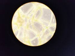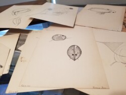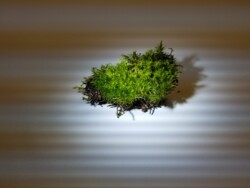 Because plankton are so small in comparison to the size of the water molecules, their movement might feel to us like swimming through molasses. The viscous and vivid red and nonabsorbent surface of the yupo paper, which is made of polypropylene, attempt to evoke this foreign experience of water. Small white lines depict two of the lake-wide free-oscillation seiche modes (closed currents researched by Mark Lorang), and are painted with an upconverting nanoparticle, Sodium Yttrium Fluoride (NaYF4). The crystalline structure of the nanoparticle is able to temporarily store photons of non-visible wavelengths of light and emit them as visible light, a process used mostly in cell imaging and anti-counterfeit measures for currency. By shining an infrared laser at the piece, snippets of seiche data can be illuminated, pointing to the impossibility of generating a complete and accurate picture of the constantly oscillating motion of the lake.